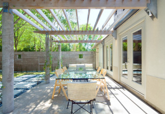 É um item muito utilizado na arquitetura, pois sombreia os espaços abertos, oferecendo ambientes confortáveis que criam áreas de transição interessantes. Por possuir vigas espaçadas, os efeitos que a sombra gera permite um ambiente rico e translúcido. Podem servir como apoio de plantas, como trepadeiras, que ajudam na proteção de iluminação natural e além de criar um espaço de descanso mais aconchegante e convidativo.